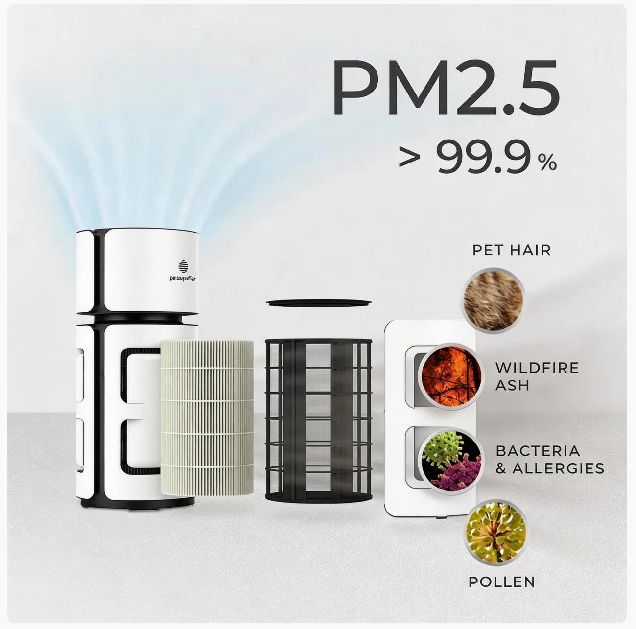 Pet Air Purifier with H13 HEPA Filter, Removes Pet Hair, Dander, Dust and Odors, Quiet Air Cleaner for Bedroom, Living Room and Home